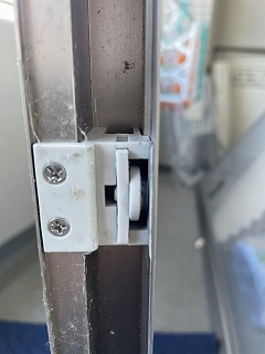 網戸の開閉にガタツキがあり、外れやすいとのことで、戸車の交換を行いました。