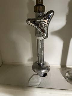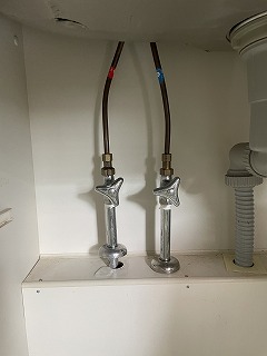 スライドの引き出しを抜き配管を見るとやはり給湯管から漏水していました。