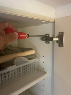 耐震ロックは問題なく、扉の蝶板を調整して改善しました。