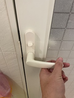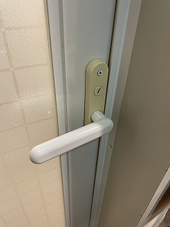 浴室扉のレバーハンドルが壊れているとのことで、交換を行いました。