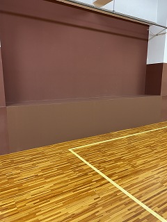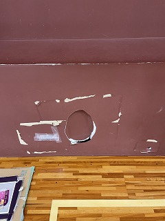 大阪府立高校、体育館、壁の穴を補修工事させていただきました。